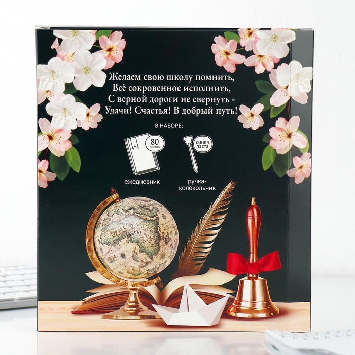 Подарочный набор на выпускной: Ежедневник А5, 80 листов и ручка-колокольчик «Прощай, школа!»