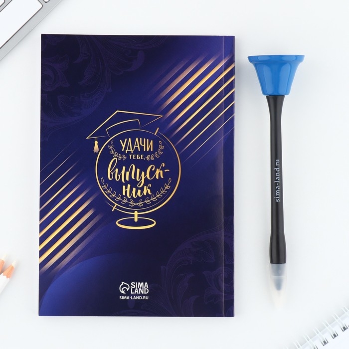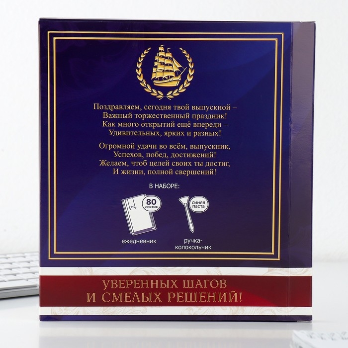 Подарочный набор на выпускной: Ежедневник А5, 80 листов и ручка-колокольчик «В добрый путь!»