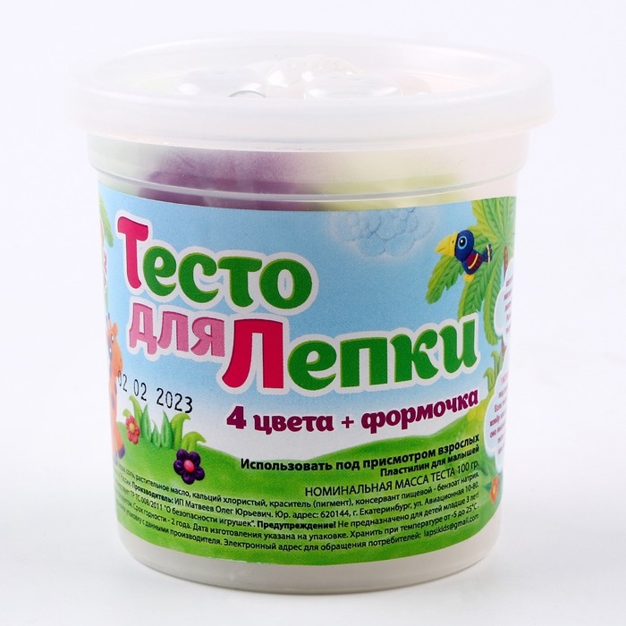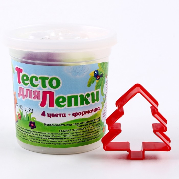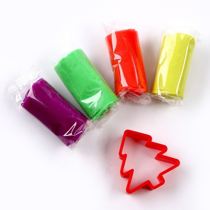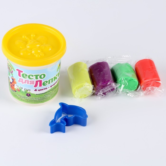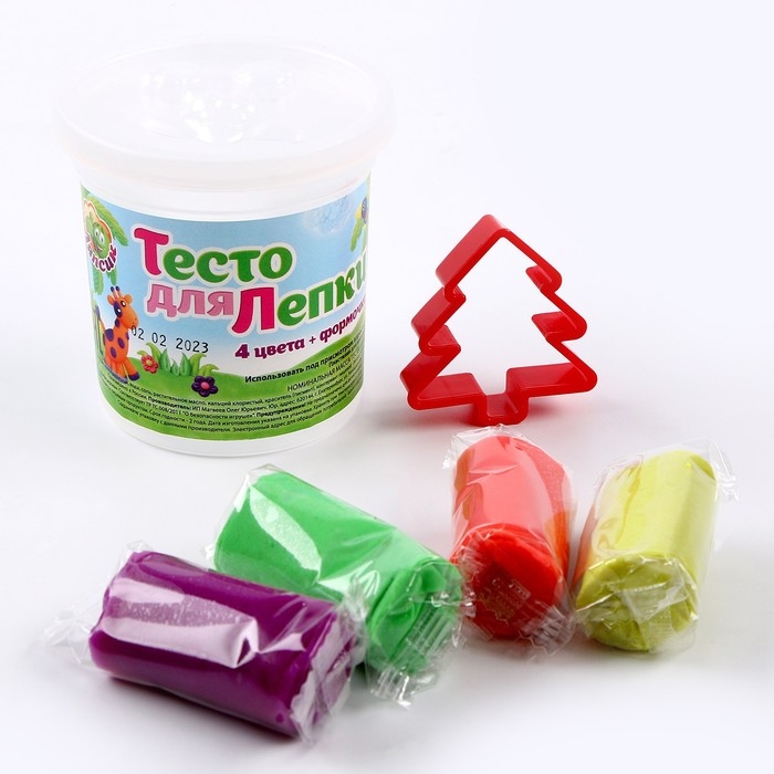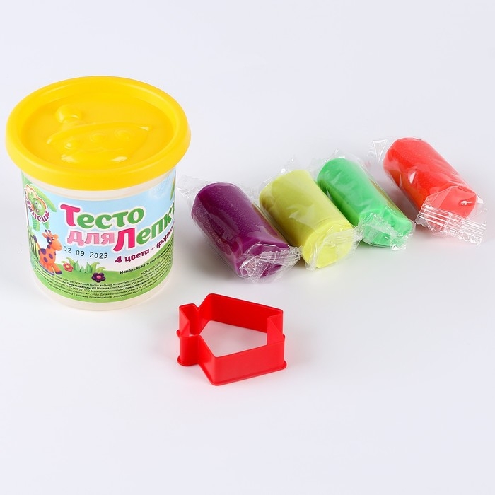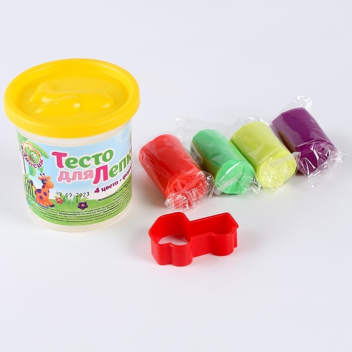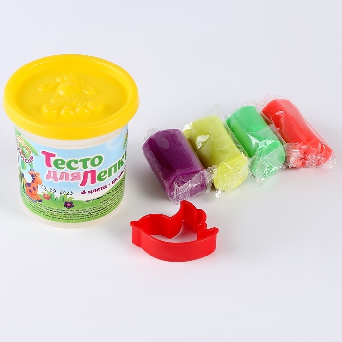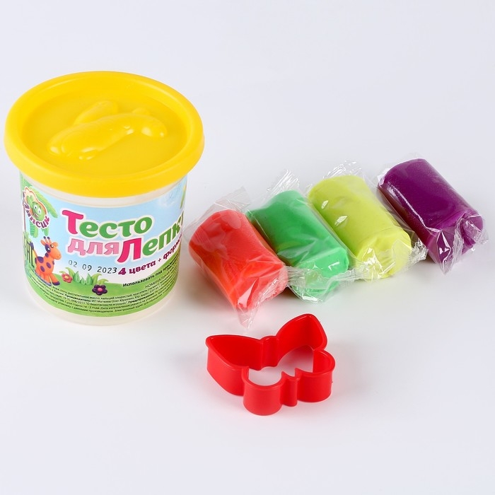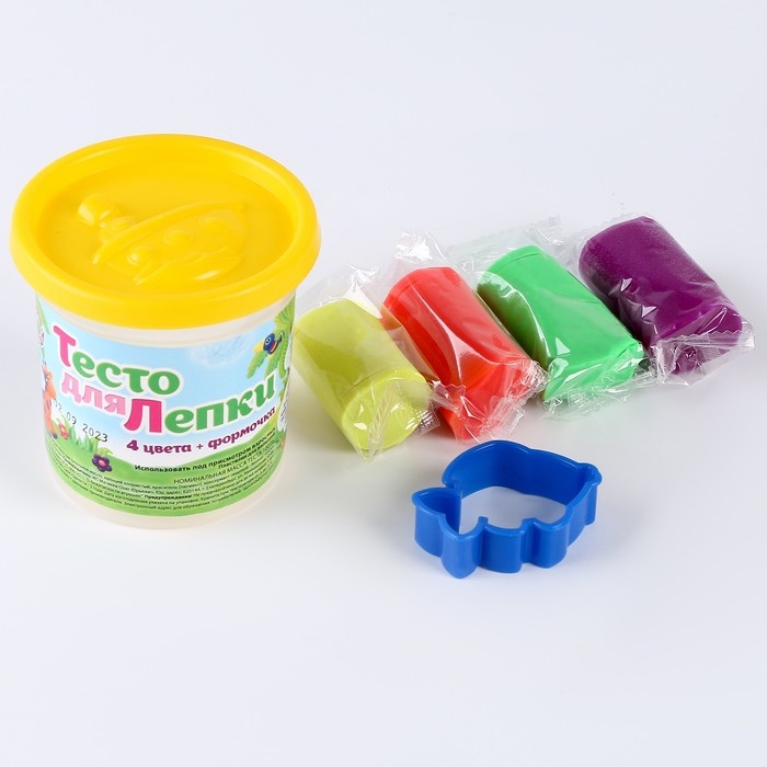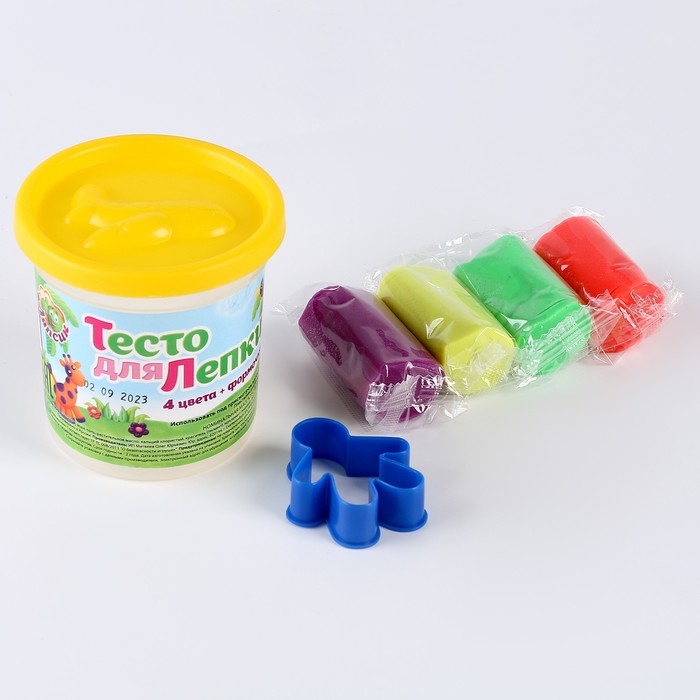 Тесто для лепки в банке 4 цвета по 25 г + формочка-каттер