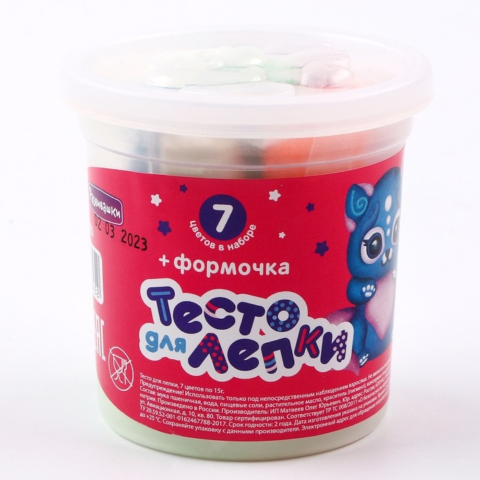 Тесто для лепки в банке 7 цветов по 15 г + формочка
