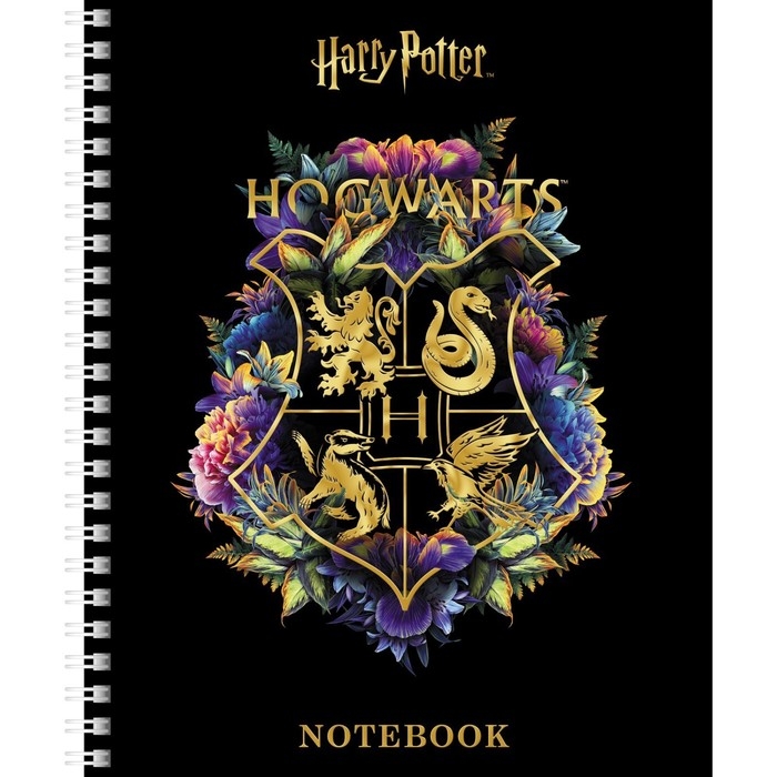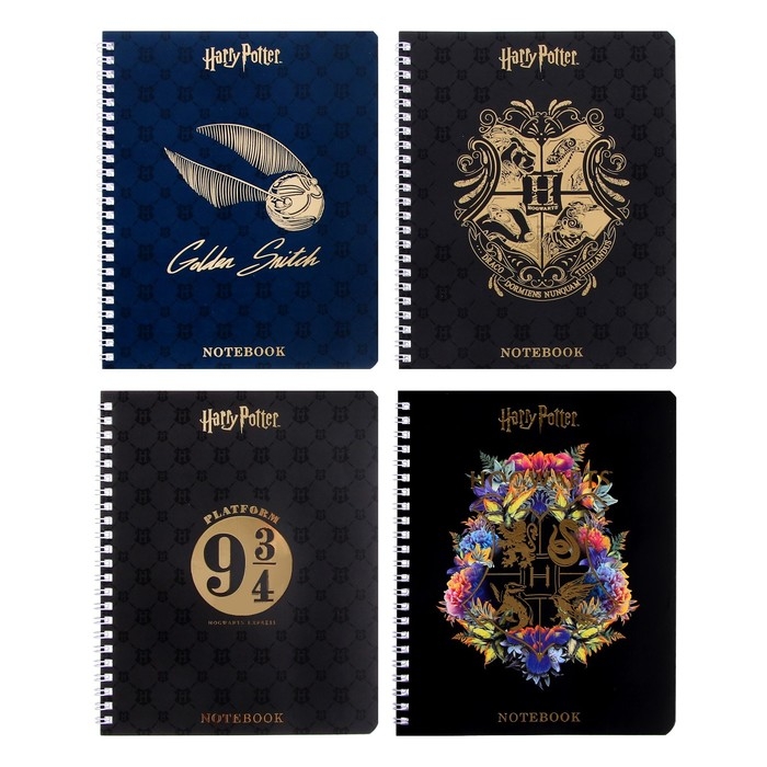 Тетрадь 48 листов в клетку на гребне "Гарри Поттер", обложка мелованный картон, матовая ламинация, 3D фольга, блок офсет, 4 вида МИКС