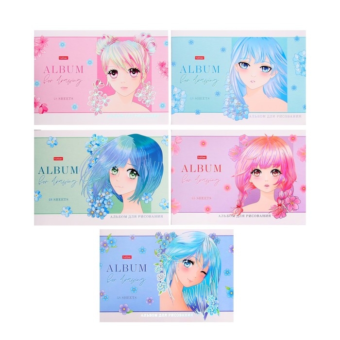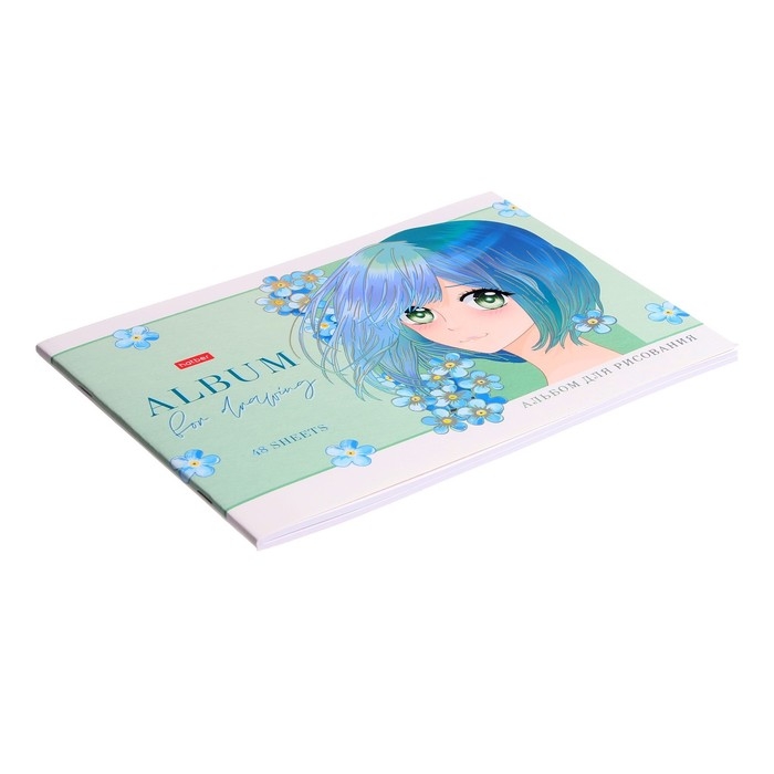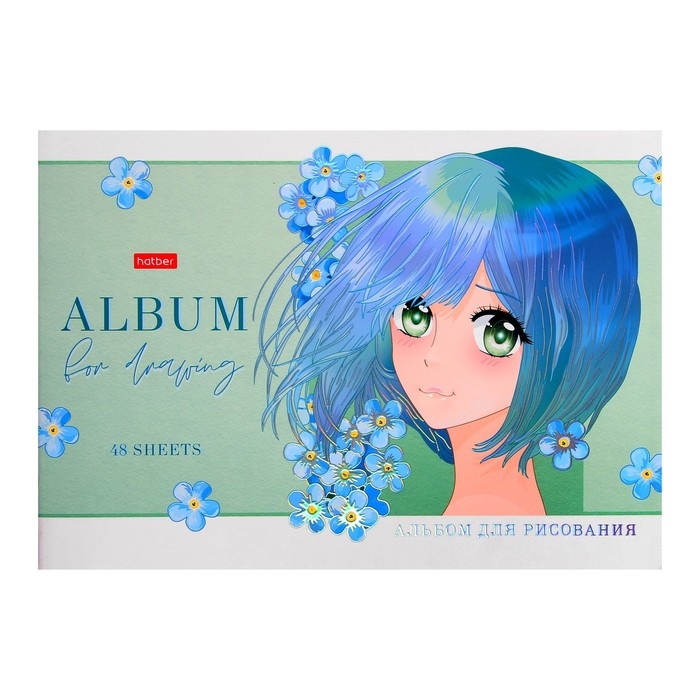 Альбом для рисования А4, 48 листов, "Ангелы аниме", обложка мелованный картон, матовая ламинация, 3D фольга, блок 100 г/м2