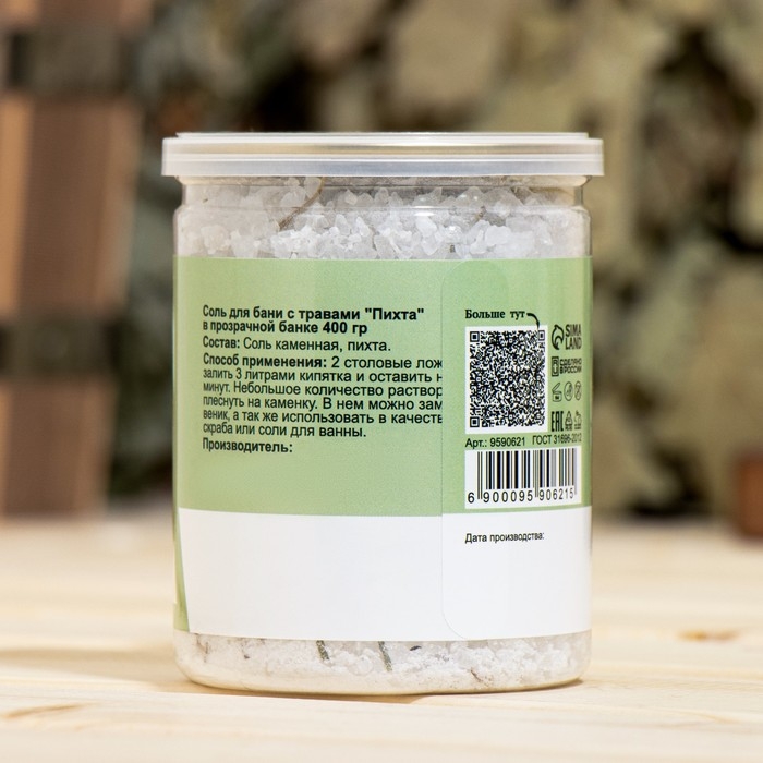 Соль для бани с травами "Пихта" в прозрачной банке, 400 гр