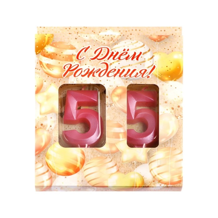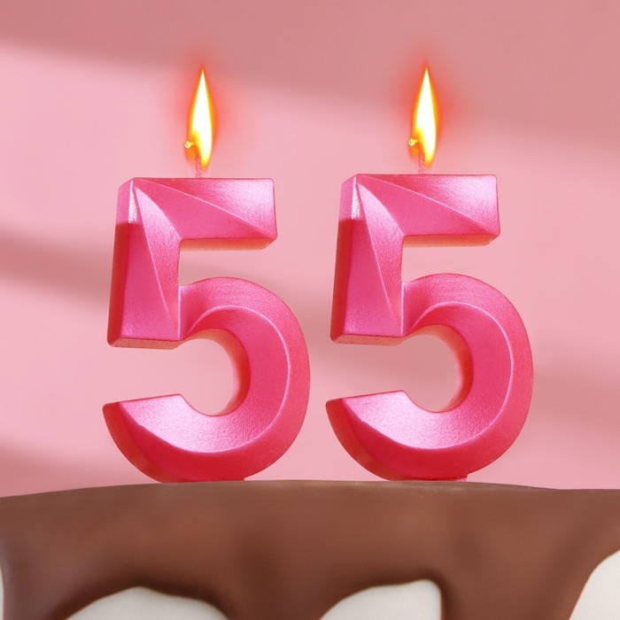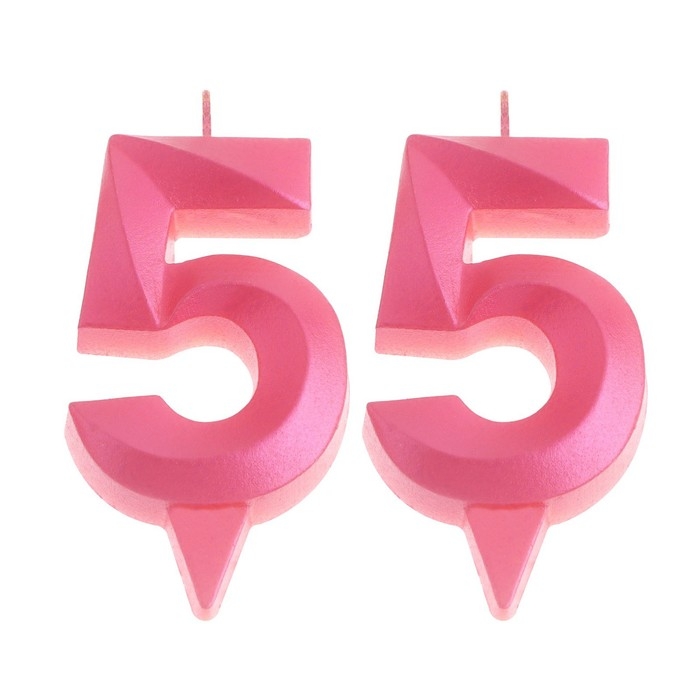 Свеча в торт юбилейная "Грань" (набор 2 в 1), цифра 55, розовый металлик, 6,5 см