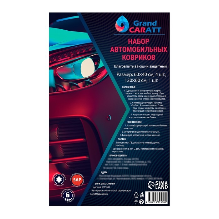 Одноразовый впитывающий коврик защитит салон автомобиля и вашу обувь от сырости, грязи, снега, противогололедных реагентов, следов нефтепродуктов. Суперабсорбирующий полимер (SAP) из Японии связывает более двух кружек жидкости в виде геля и блокирует неприятные запахи. Коврик не мешает ходу педалей и управлению автомобилем. Срок хранения: 5 лет.