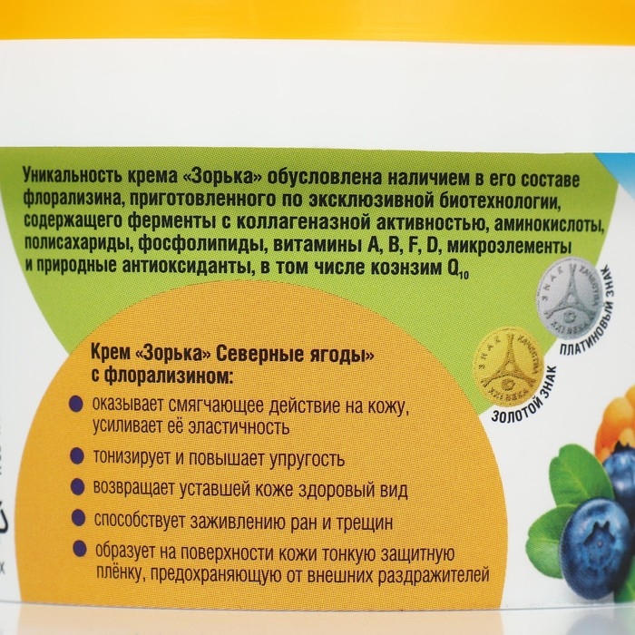 Состав: флорализин 10%, вода очищенная, вазелин, экстракты ежевики, брусники, морошки, черники, эмульгатор, консервант, регулятор кислотности, отдушка.
