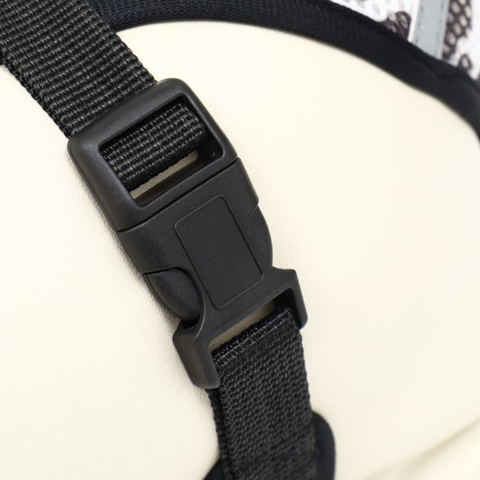 Шлейка прогулочная со светоотражающими элементами, сделана из высокотехнологичных материалов с мягкой подкладкой из неопрена, имеет эргономичную форму, которая переносит рывковое усилие Вашей собаки на грудь, не задействуя шею.