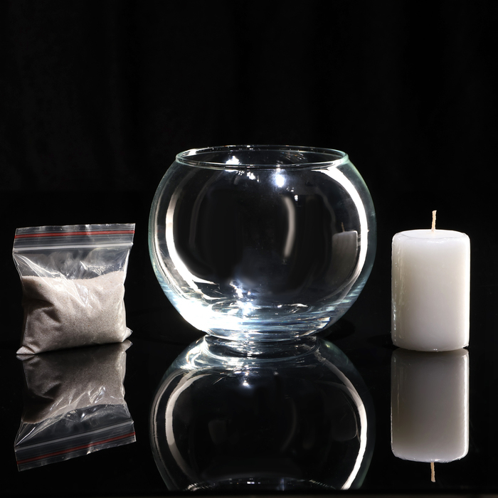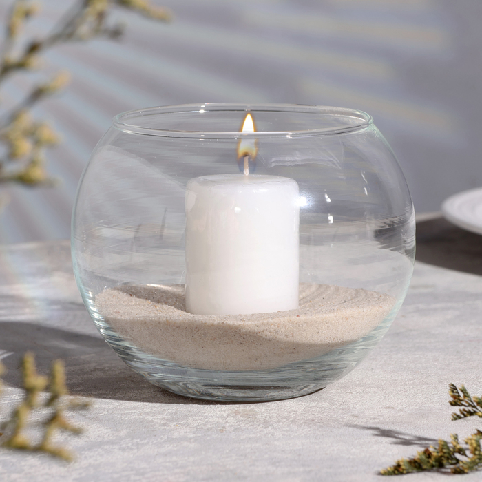 Ваза-подсвечник "Классика" с белой свечой, 12×10 см, 9 ч, шар, стекло