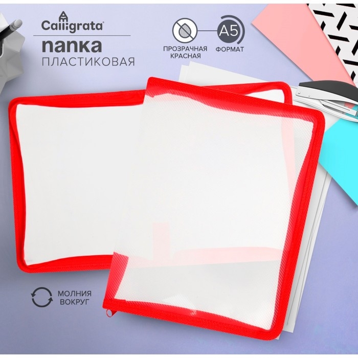 Папка пластиковая А5, 240 х 185 х 25 мм, молния вокруг, "Офис"