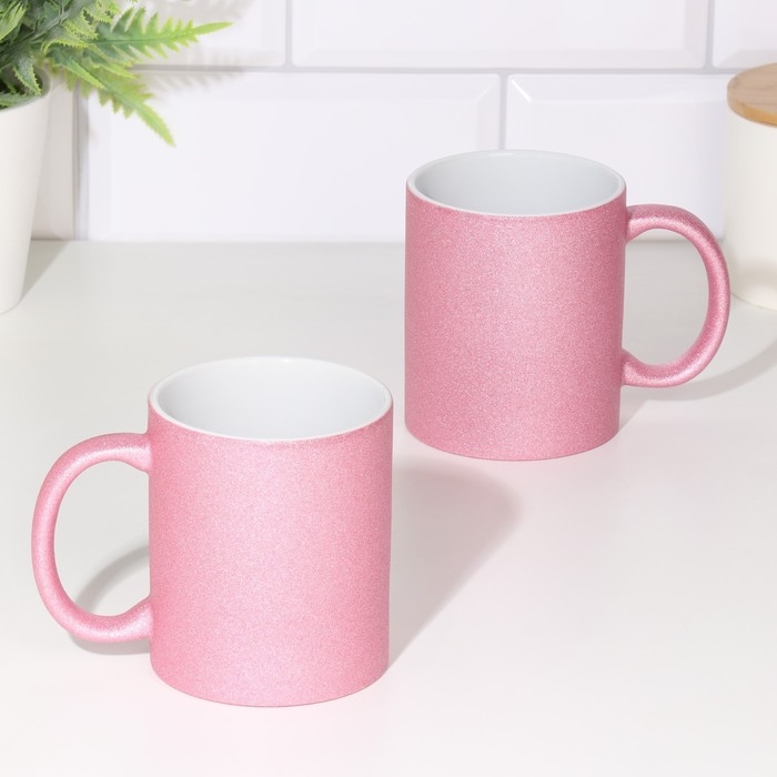 Кружка под сублимацию, керамическая с логотипом, цвет розовый глиттер, 320мл