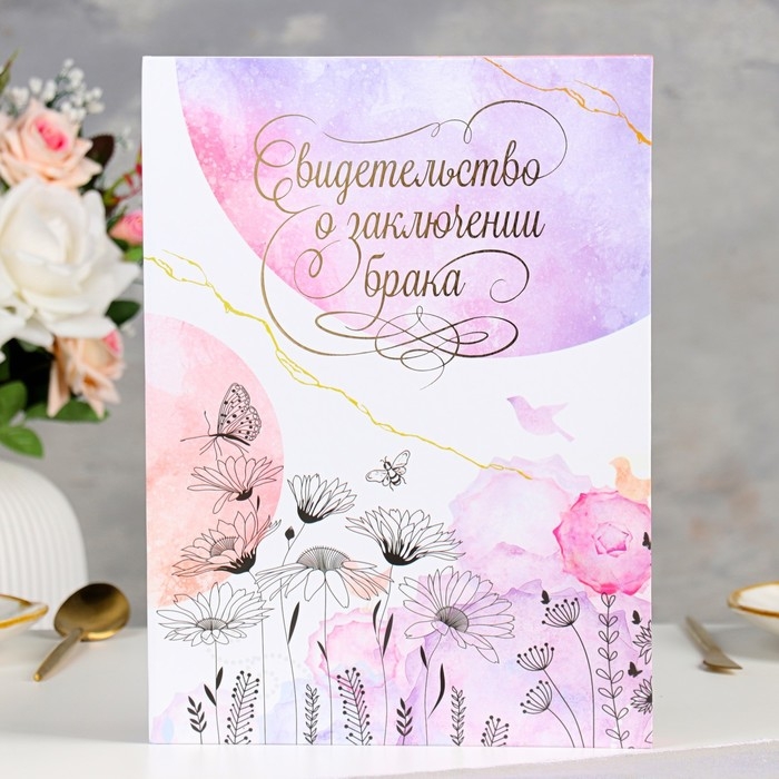Свидетельство о заключении брака "Цветение" софт тач, тиснение, бабочки, 31х22,5 см