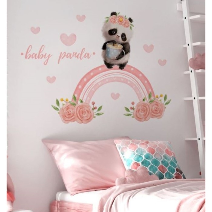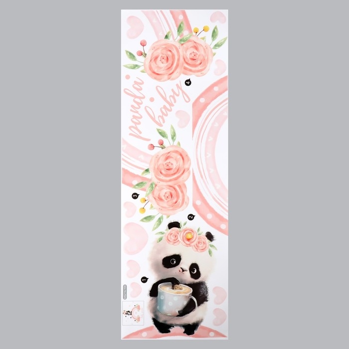 Наклейка пластик интерьерная цветная "Панда с чашкой на радуге" 30х90 см