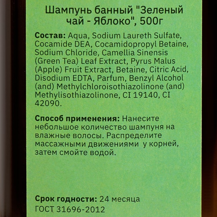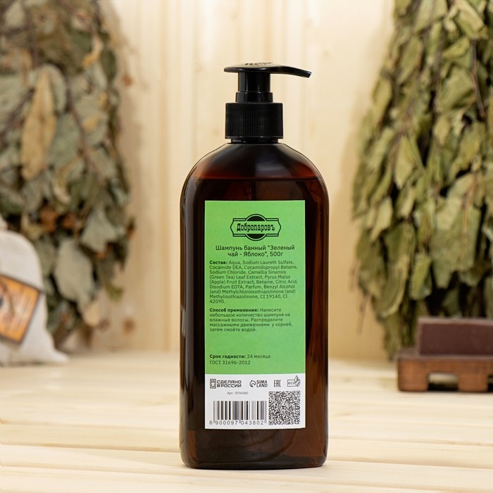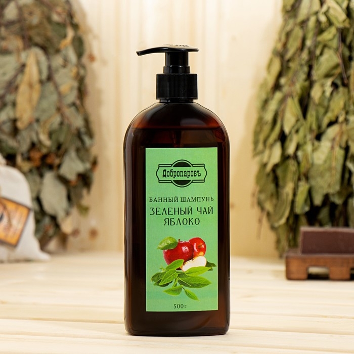 Шампунь для волос банный "Зеленый чай - Яблоко" 500 мл с дозатором