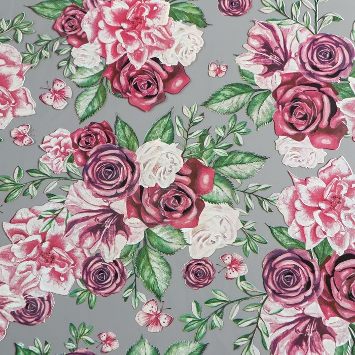 Пленка для цветов "Бабочки" розовый+белый 0,7 х 8.2 м, 40мкм