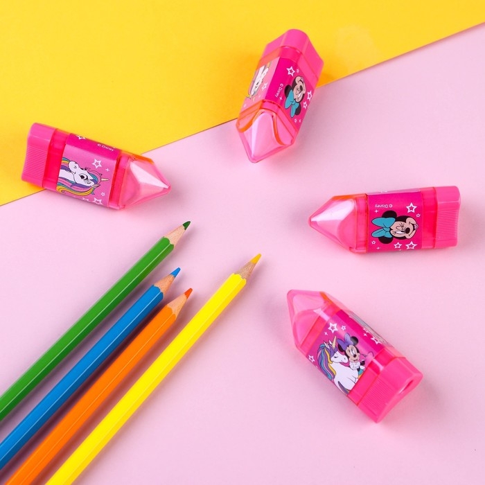 Точилка с ластиком, пластиковая, Минни Маус и Единорог