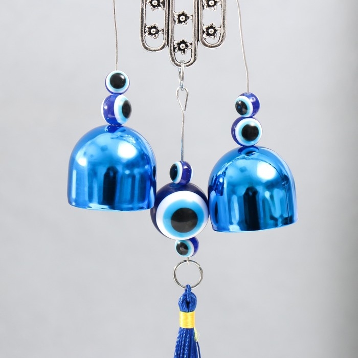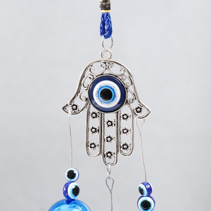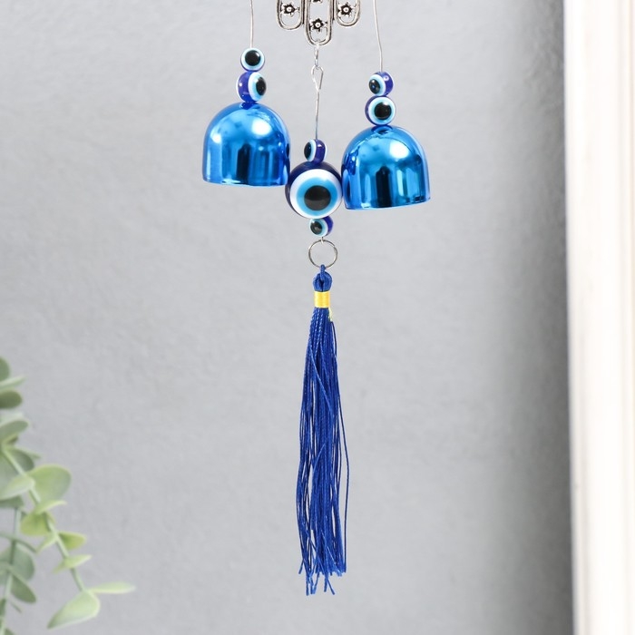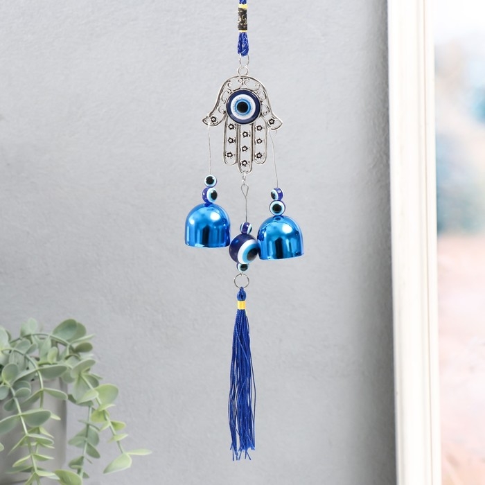 Музыка ветра металл "Рука Фатимы" от сглаза с кисточкой 2 колокольчика 23 см