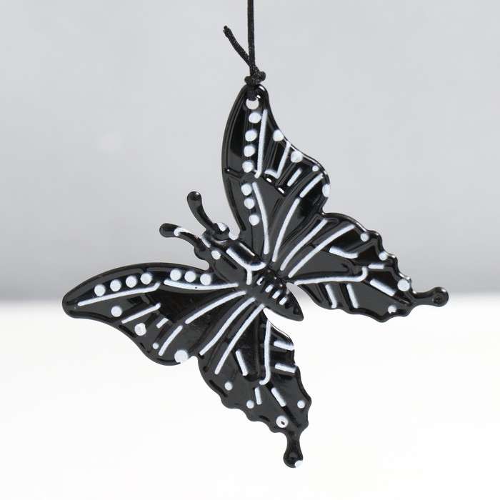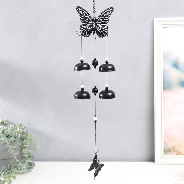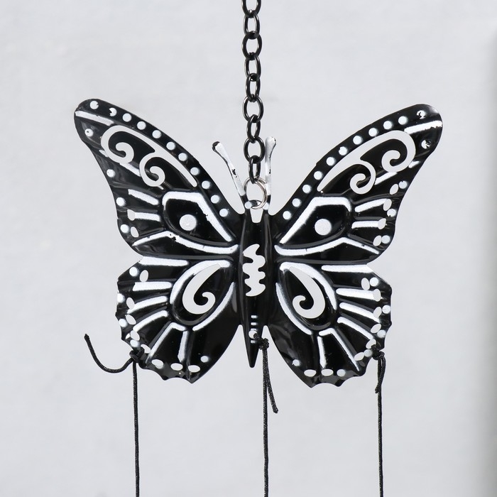 Музыка ветра металл "Бабочки чёрно-белое" 4 колокольчика 47 см