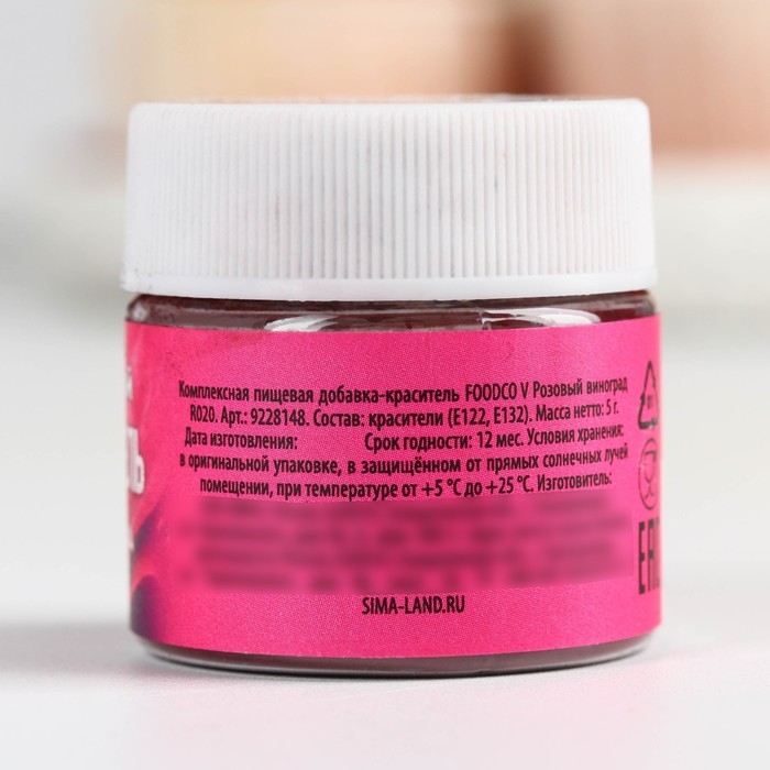 Краситель сухой водорастворимый «Тёмно-розовый» для десертов, 5 г.