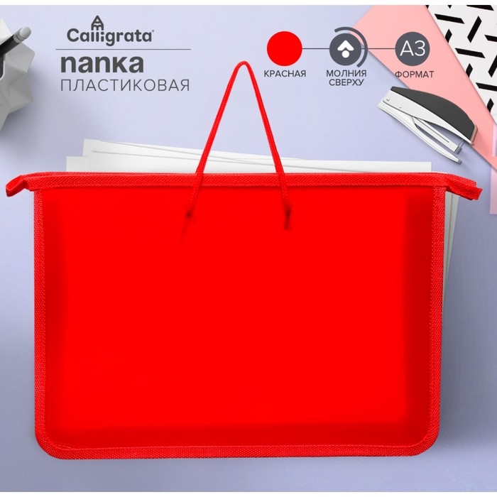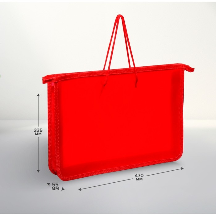 Папка для чертежей и рисунков А3, 470 х 335 х 55 мм, с ручками, пластиковая, молния сверху, "Офис"