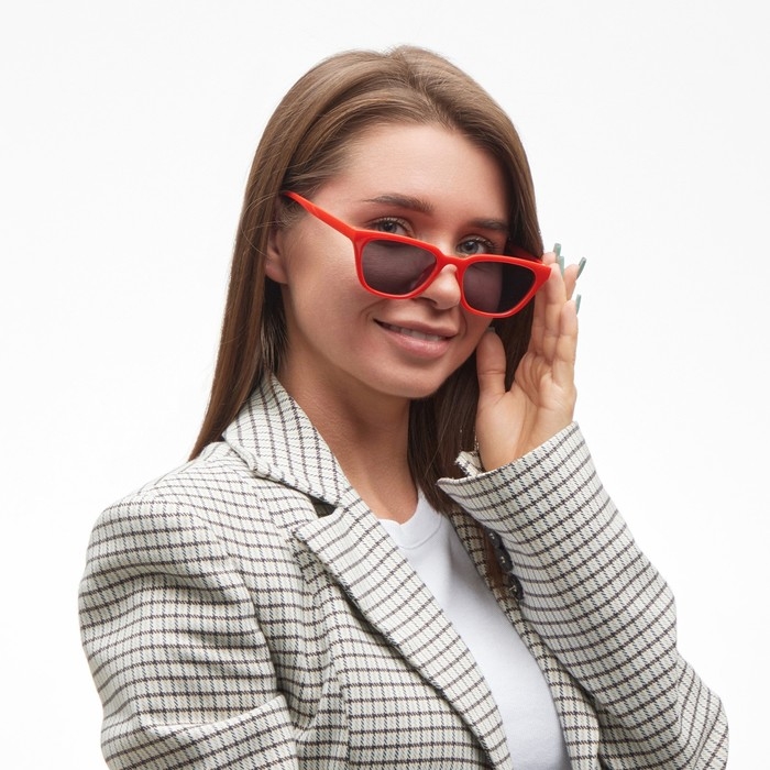 Солнцезащитные очки уберегут глаза от вредных ультрафиолетовых лучей, а благодаря стильному минималистичному дизайну станут красивым акцентом в вашем повседневном или деловом образе! Форма очков подчеркнет вашу женственность. Крутой декоративный аксессуар хорошо будет смотреться и с молодежным стилем кэжуал на девочке подростке, и со строгой классикой на взрослой леди. Они пригодятся вам для создания милого и красивого аутфита на фотосессию, вечеринку и другие мероприятия.