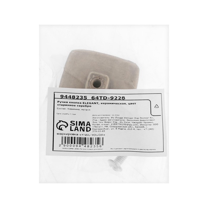 Ручка кнопка ELEGANT, керамическая, цвет старинное серебро