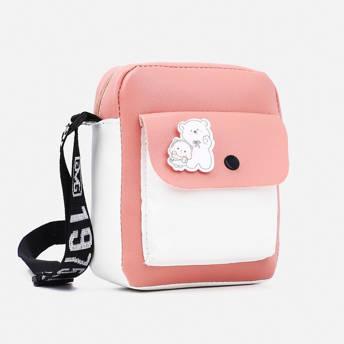 Сумка детская для девочки на длинном ремне, наружный карман, цвет розовый