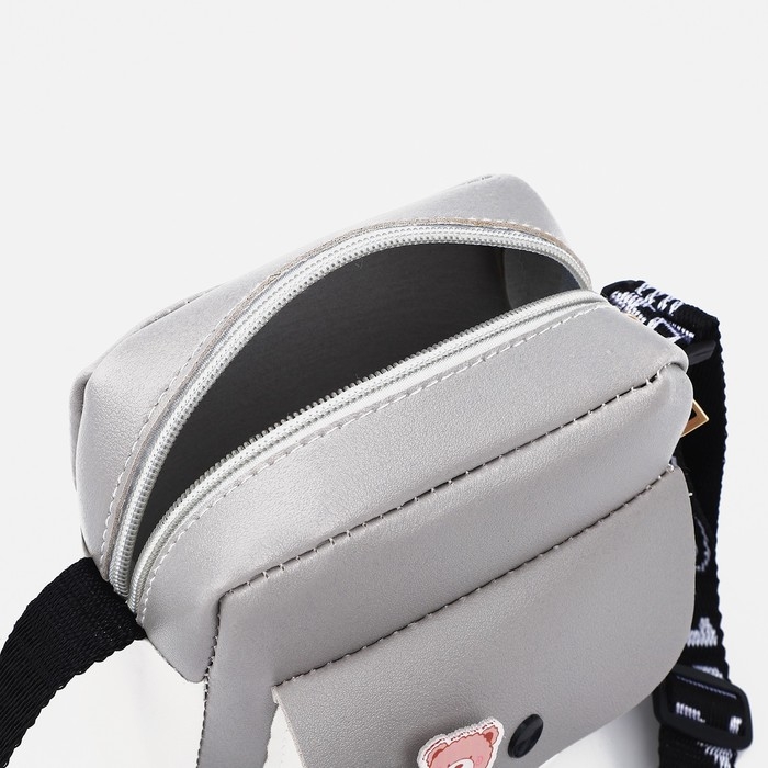 Сумка детская на длинном ремне, наружный карман, цвет серый