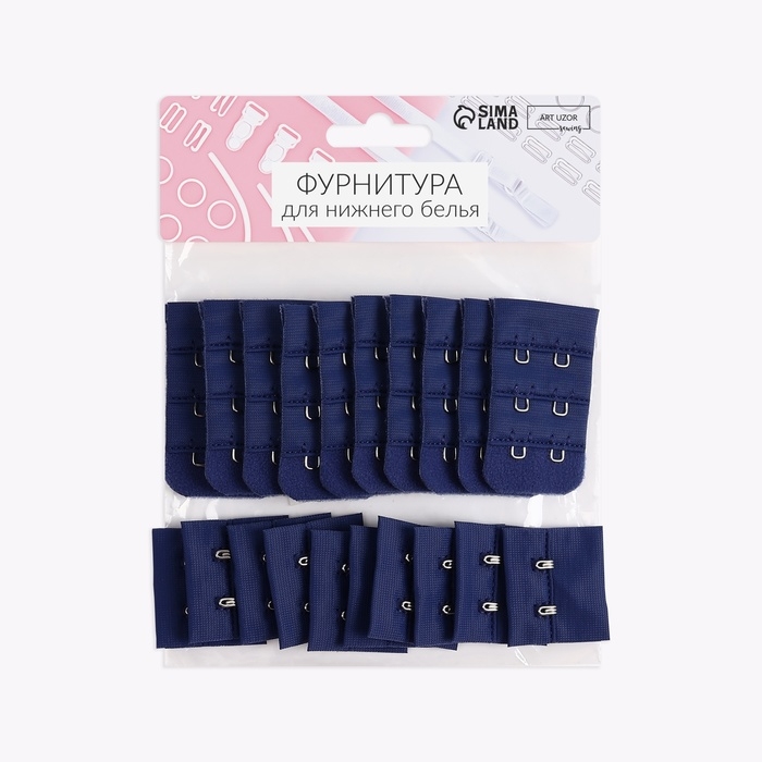 Застёжка для бюстгальтера, 3 ряда 2 крючка, 3 × 3 см, 3 × 5 см, 10 шт, цвет тёмно-синий