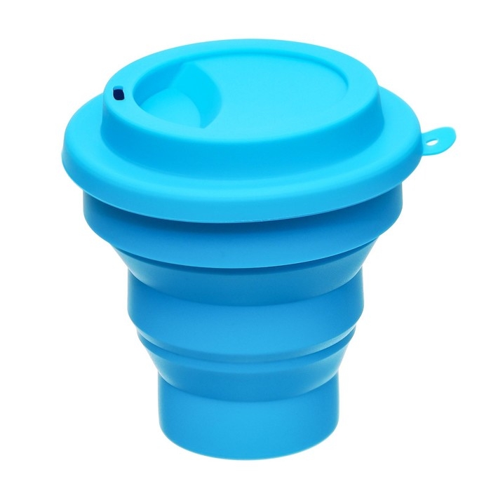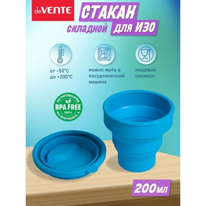 Стакан для ИЗО deVENTE. School, силиконовый, складной, в собранном виде 80 x 90 x 80 мм, в сложенном 80 x 10 x 80 мм, с силиконовой крышкой, неоновый голубой.