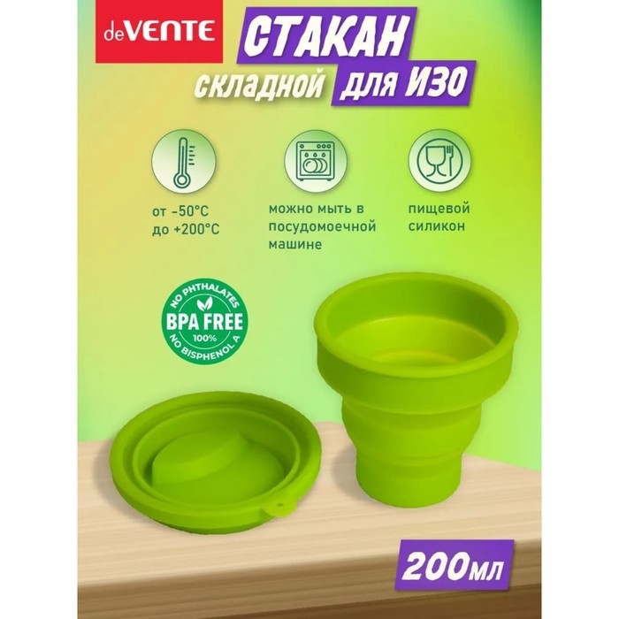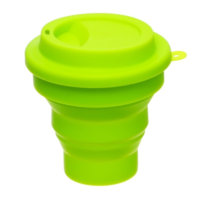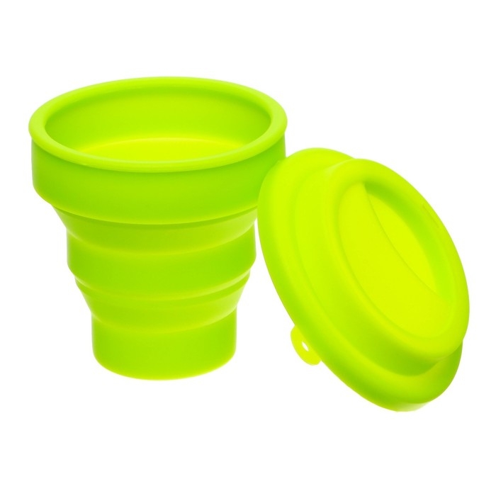Стакан для ИЗО deVENTE. School, силиконовый, складной, в собранном виде 80 x 90 x 80 мм, в сложенном 80 x 10 x 80 мм, с силиконовой крышкой, неоновый салатовый.