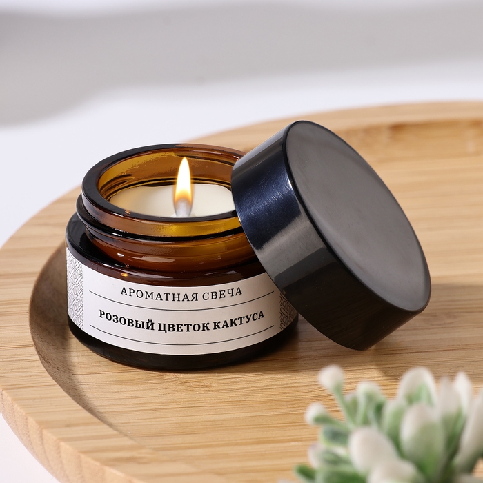 Свеча ароматическая в банке "Розовый цветок кактуса", 12 гр