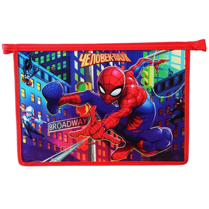 Папка пластиковая для тетрадей А4, на молнии, Человек-паук