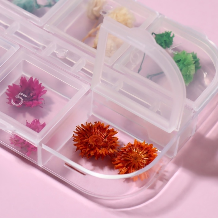 Сухоцветы для декора ногтей, в футляре, вид МИКС