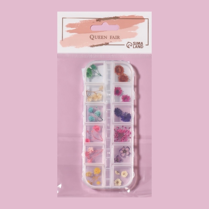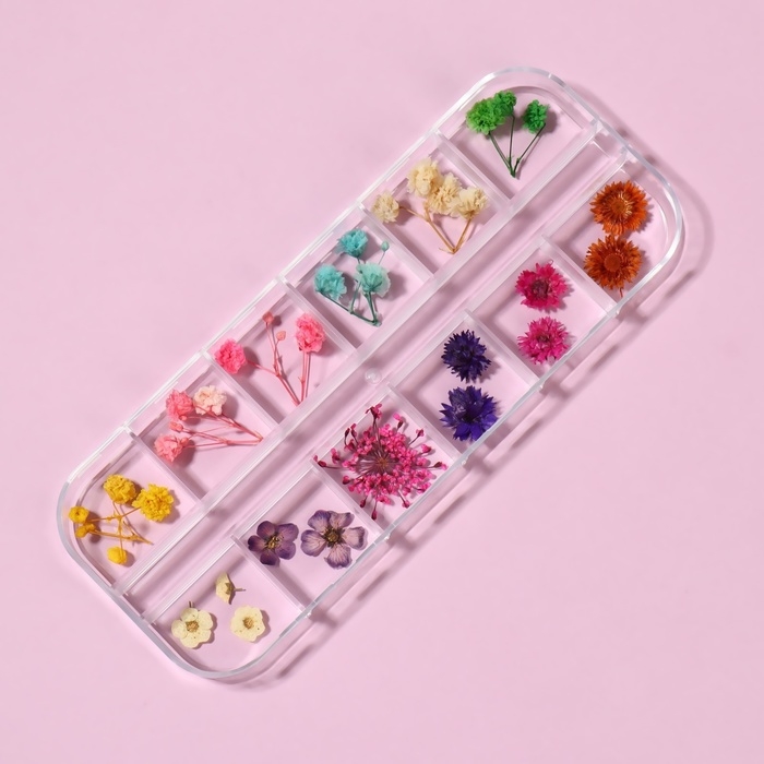 Сухоцветы для декора ногтей «Ассорти», объёмные, 12 видов, в футляре, разноцветные