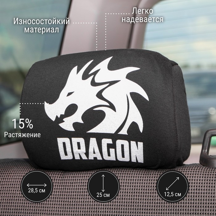 Чехлы на подголовник Дракон, черные, набор 2 шт