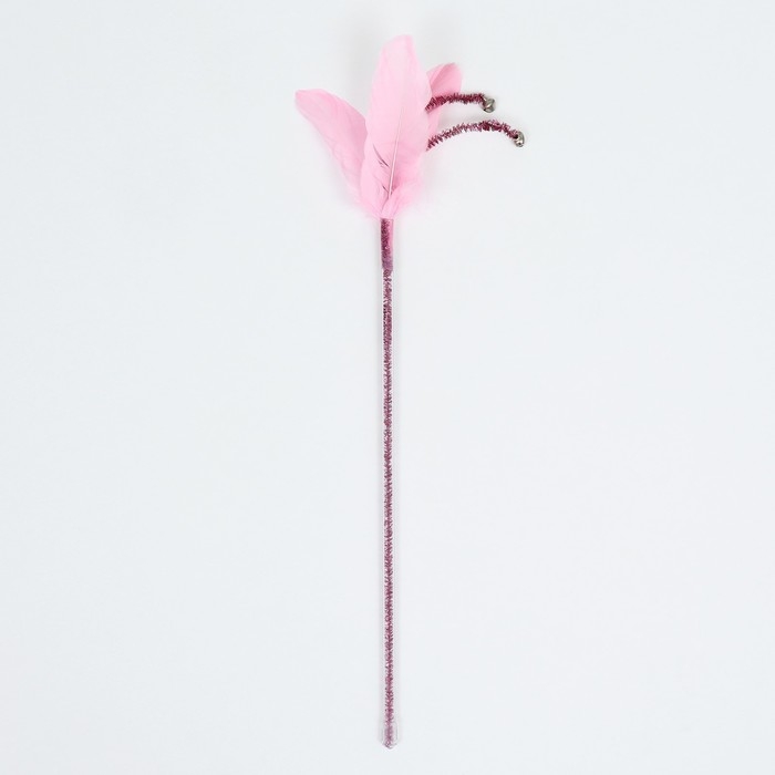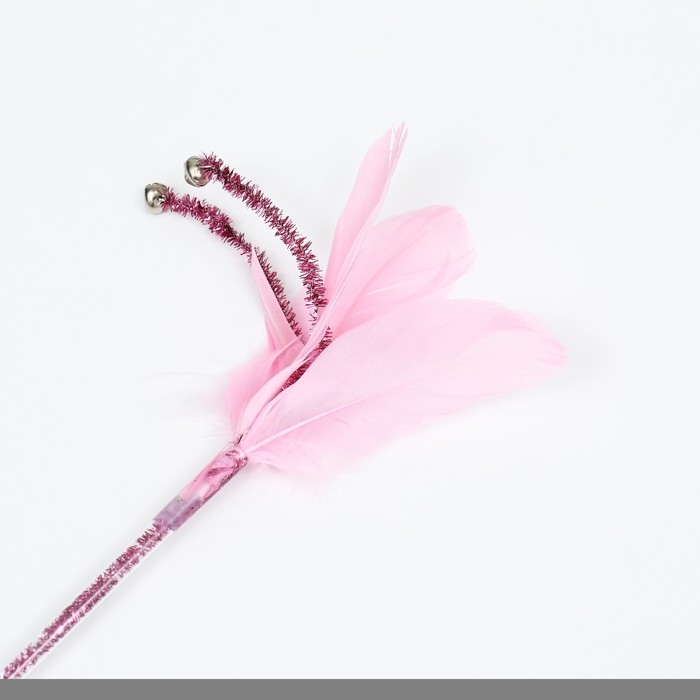 Дразнилка "Розовое Чудо" с перьями и бубенчиками 30 см, розовая