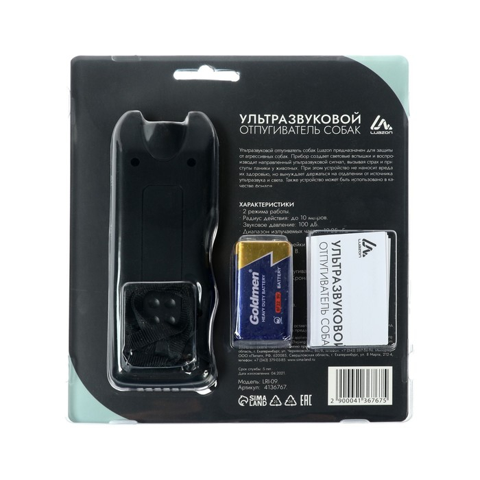 Отпугиватель собак Luazon LRI-09, ультразвуковой, питание от "Кроны" (в комплекте)