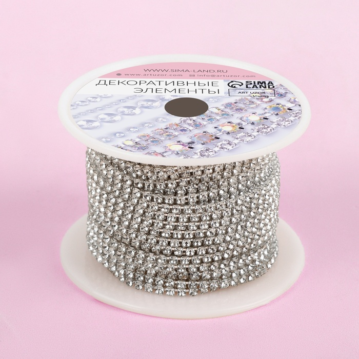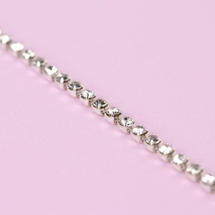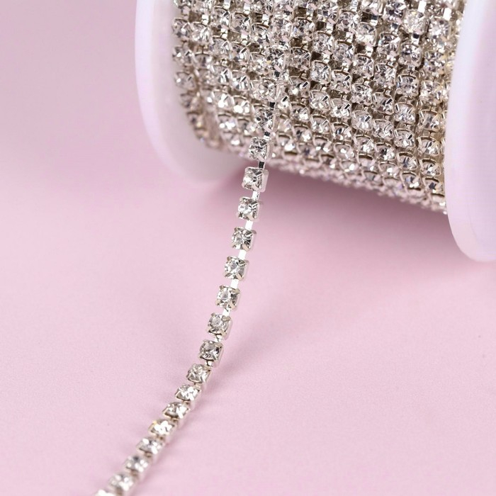 Цепь со стразами, металл, стекло, 2 мм, 9 ± 1 м, цвет серебряный