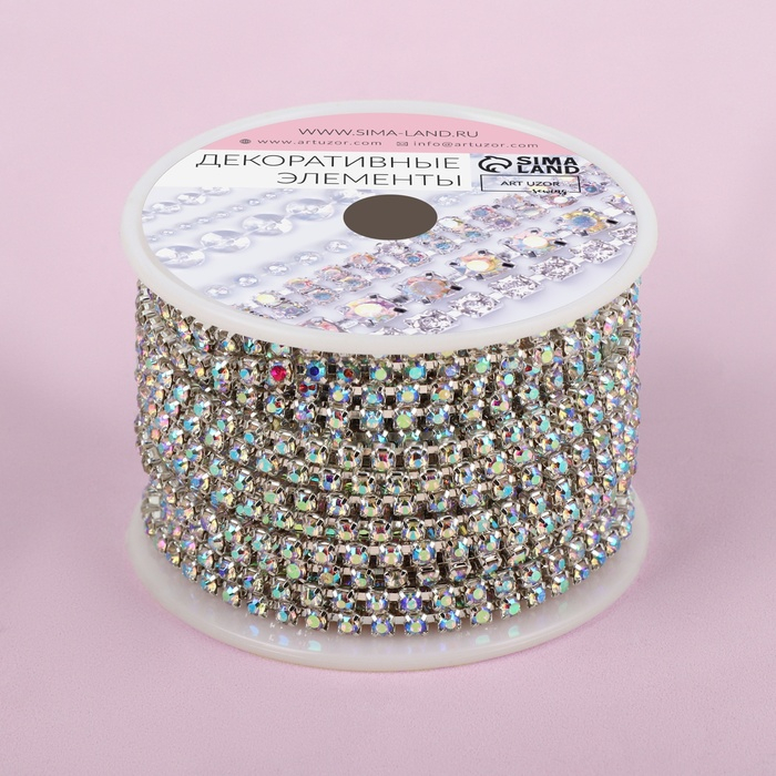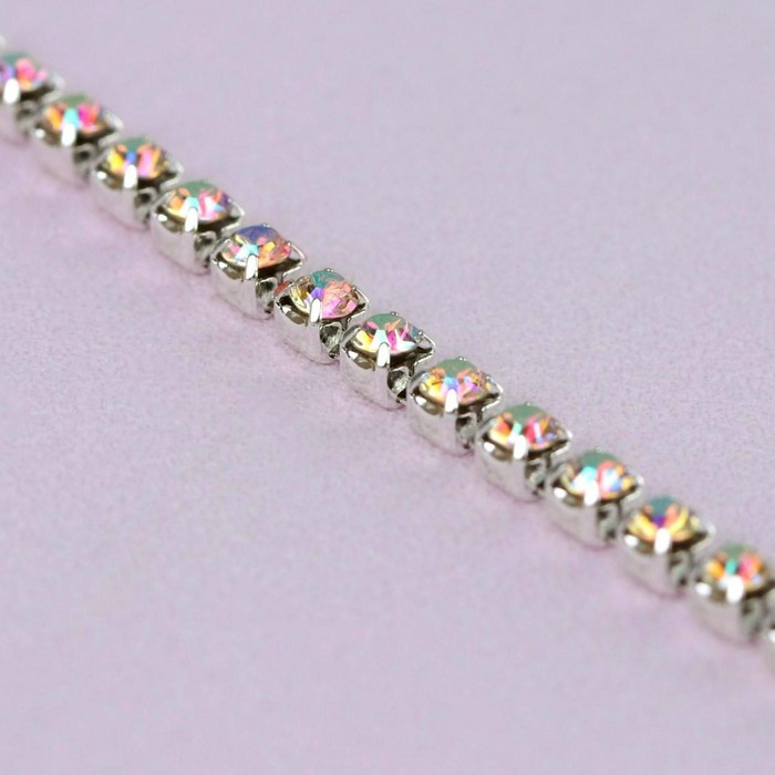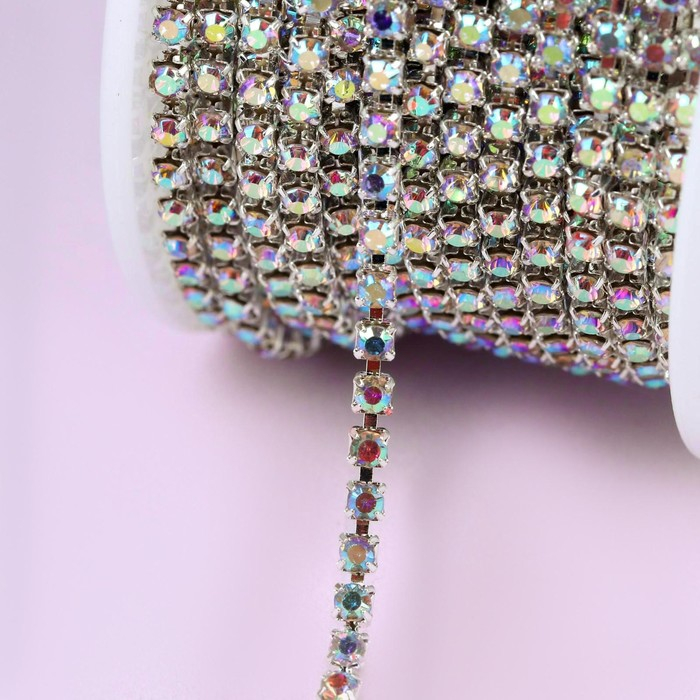 Цепь со стразами, с голографией, металл, стекло, 3 мм, 9 ± 1 м, цвет серебряный