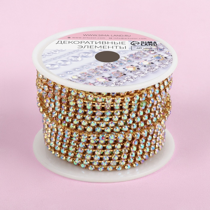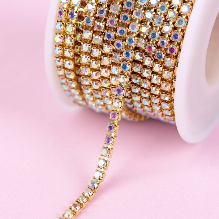 Цепь со стразами, с голографией, металл, стекло, 2,5 мм, 9 ± 1 м, цвет золотой