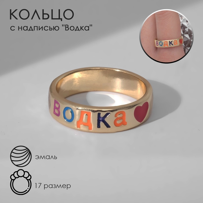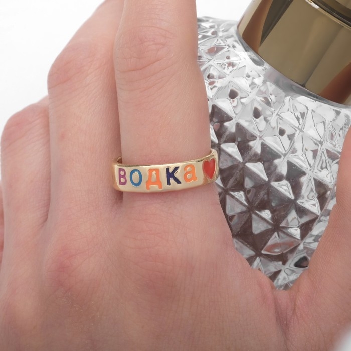 Кольцо с надписью «Водка», цветное в золоте, 17 размер