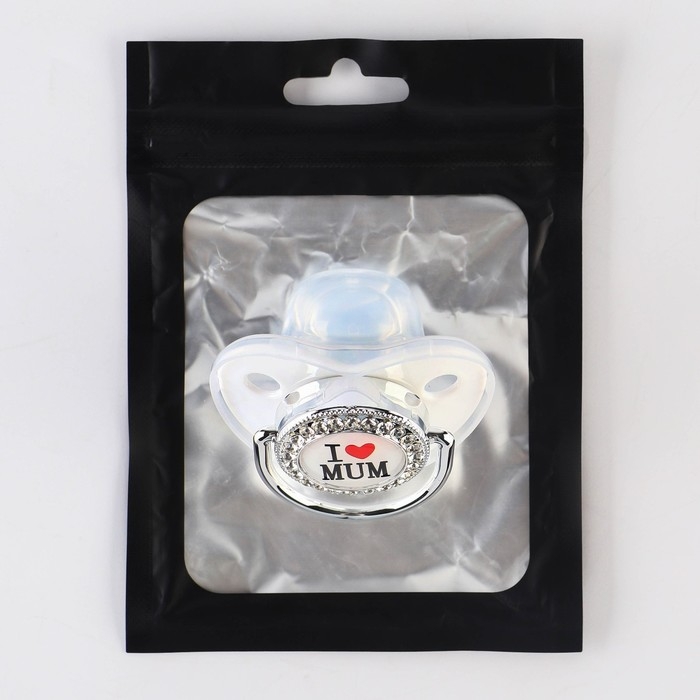 Соска - пустышка силиконовая ортодонтическая «I LOVE MUM», от 6 мес., с колпачком, цвет белый/серебро, стразы