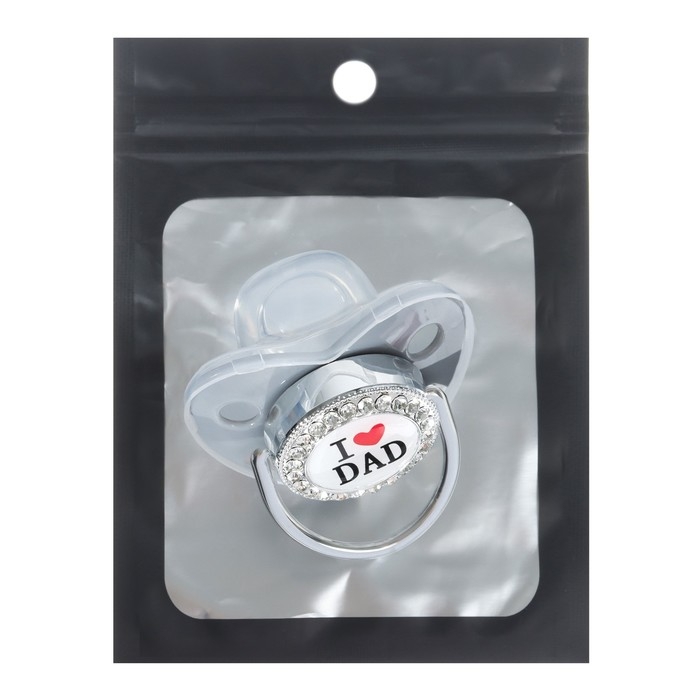 Соска - пустышка силиконовая ортодонтическая «I LOVE DAD», от 6 мес., с колпачком, цвет серый/серебро, стразы