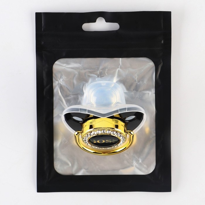 Соска - пустышка силиконовая ортодонтическая «BOSS», от 6 мес., с колпачком, цвет черный/золото, стразы