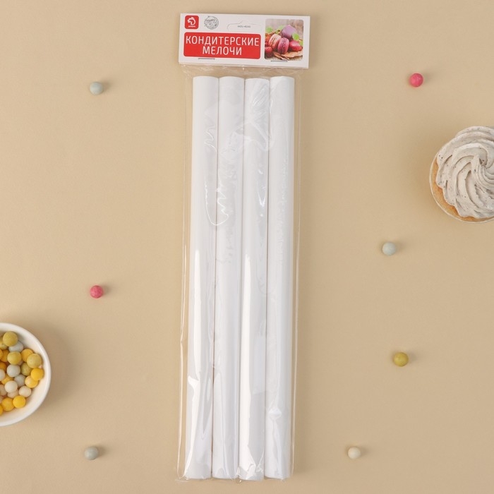 Набор палочек-дюбелей для кондитерских изделий Доляна, 4 шт, d=1,8 см, 30 см, цвет белый