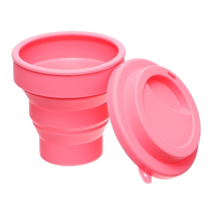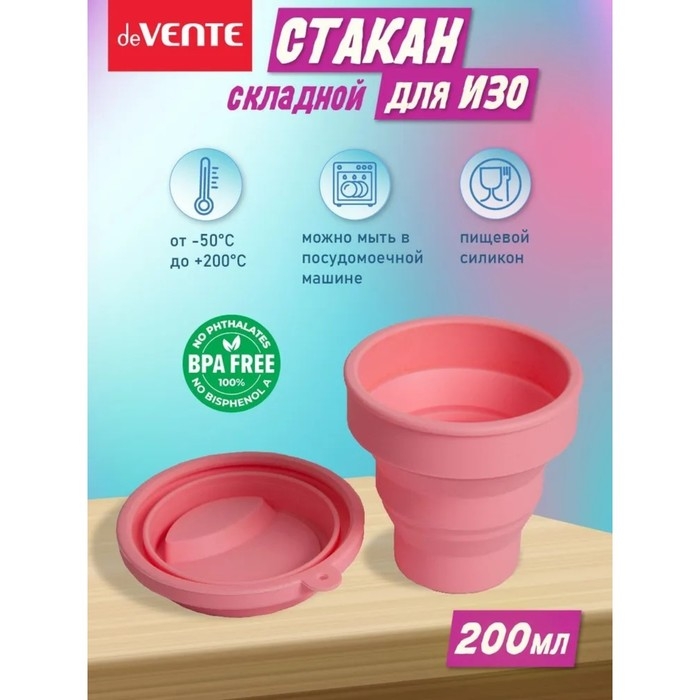 Стакан для ИЗО "deVENTE. School" силиконовый, складной, в собранном виде 80x90x80 мм, в сложенном 80x10x80 мм, с силиконовой крышкой, розовый пастельный.