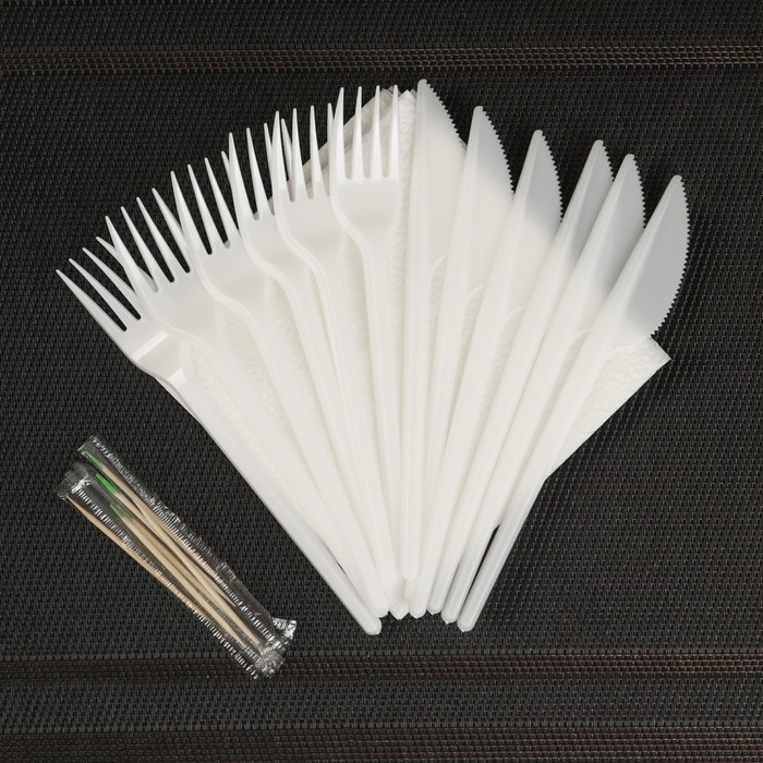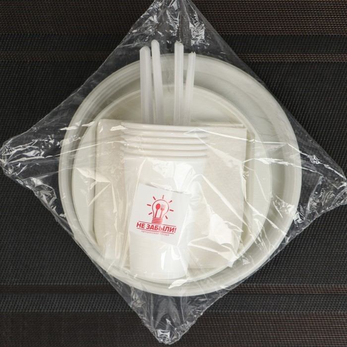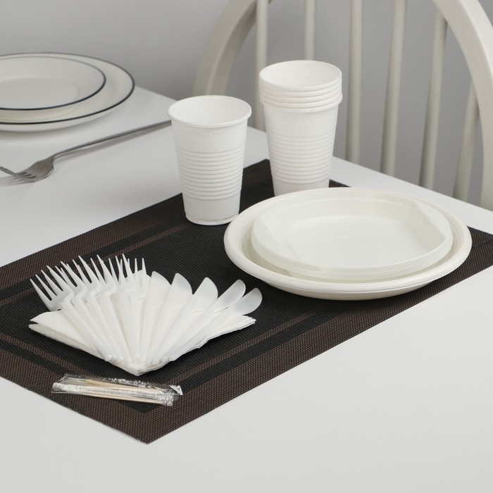 Набор пластиковой одноразовой посуды на 6 персон «Шашлычный №3», цвет белый