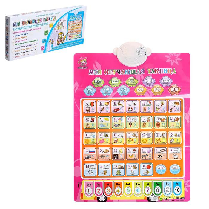 Плакат обучающий «Азбука», 7 функций, 2 языка, работает от батареек
