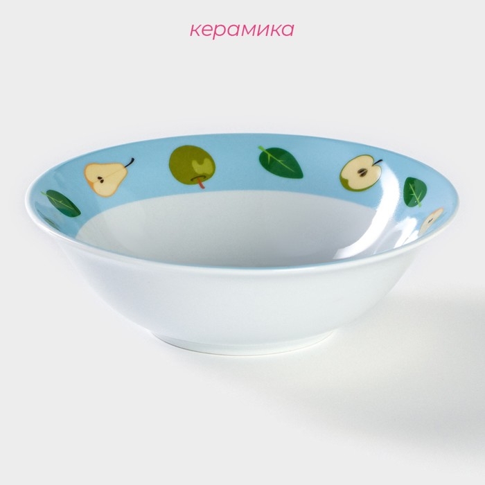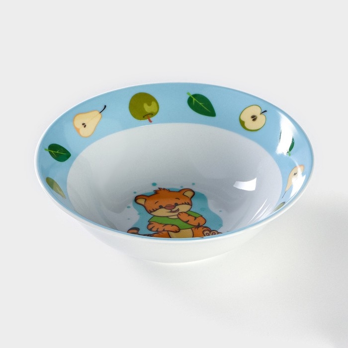 Тарелка керамическая глубокая Доляна «Тигрёнок с грушами», 400 мл, d=15 см, цвет белый