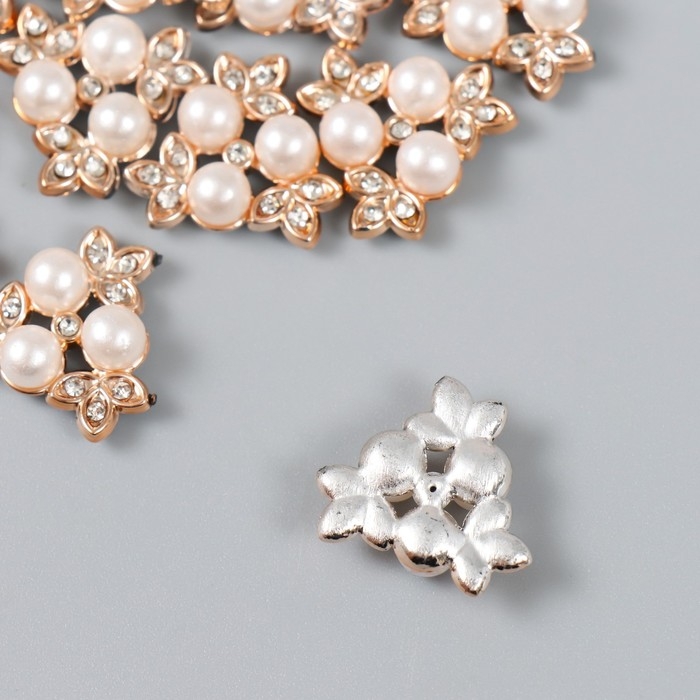 Декор для творчества пластик, стразы "3 жемчужины с листиками" набор 15 шт 2х2 см
